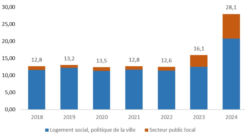 La Caisse des Dépôts a joué à plein son rôle contracyclique en 2024, en accordant près de 28,5 Md€ de prêts aux bailleurs sociaux et aux collectivités locales, les fonds mobilisés ayan