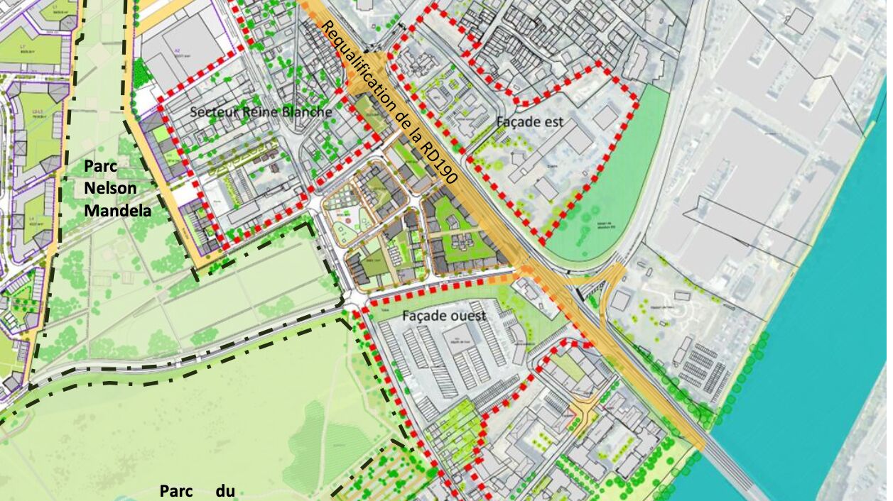 Peu amène, l'entrée de ville sud se situe pourtant à proximité de la boucle de Chanteloup qui donne à voir les berges de Seine et des terres agricoles aux portes de l’Ile-de-France. S'ajoutent également les parcs du peuple de l’Herbe et Nelson Mandel