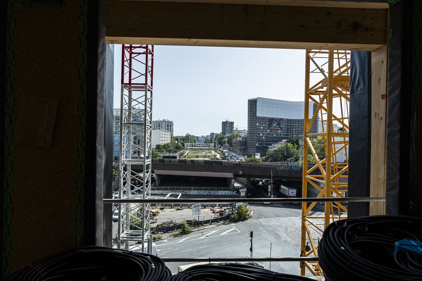 Paris : visite de chantier de la résidence Hosta, immeuble bas carbone suspendu sur le périphérique parisien