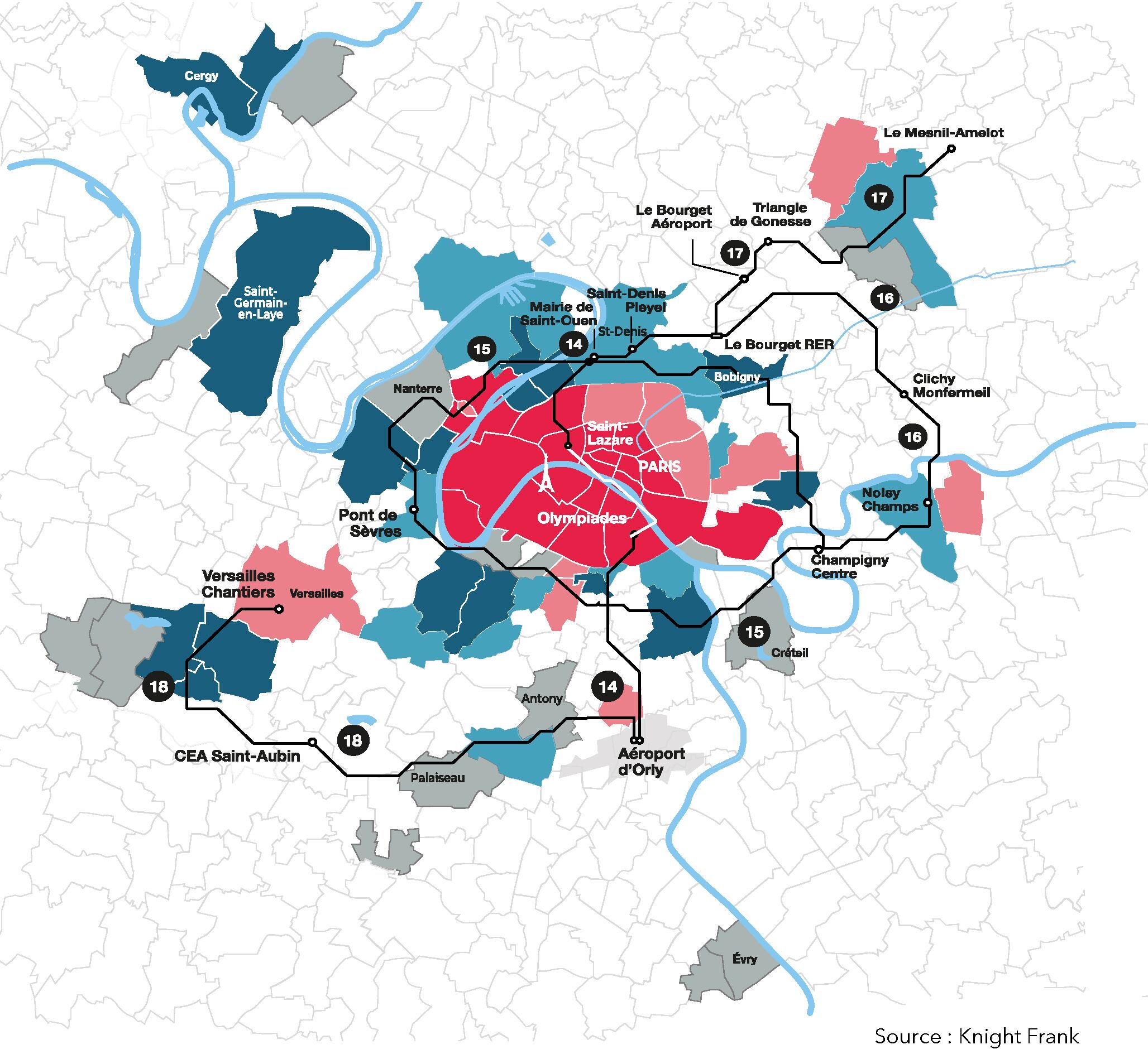 Les investissements dans des bureaux en Île-de-France ont diminué de 17% entre 2021 et 2022, 10,6 Md€, explique Knight Frank. Pour autant, la demande placée a, elle, augmenté de 16% dans le même temps. Les disparités entre Paris et le reste de la région s'accentuent. Le stock vacant depuis plus de 4 ans, jugé obsolète, reste important malgré une baisse notable, permise notamment grâce aux opérations de transformations de bureaux en logements.