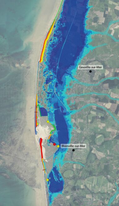 Avec la montée des eaux et le risque accru d'érosion, la communauté de communes de la Manche a signé un PPA ''Entre deux havres'' en 2021, afin d'organiser la relocalisation de certaines activités. Dans ce cadre, l'EPF Normandie est chargé de trouver du foncier pour y implanter deux campings situés à Gouville sur Mer et un GIE à Agon-Coutainville.