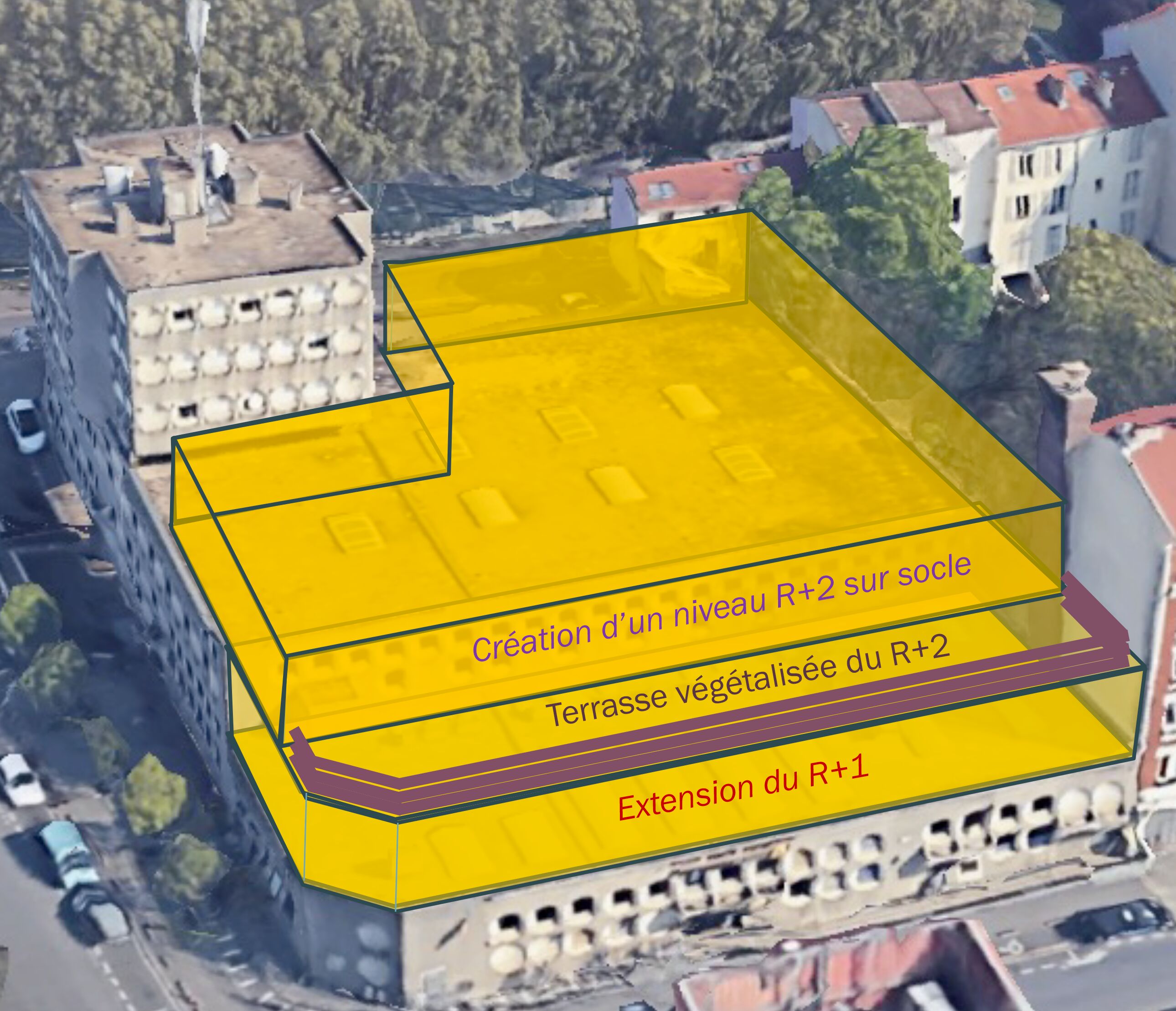 Ce bâtiment, conçu par André Chatelain, sera rénové, restructuré mais aussi surélevé afin d'accueillir la future médiathèque centrale de la commune de Saint-Denis. Plusieurs espaces d’