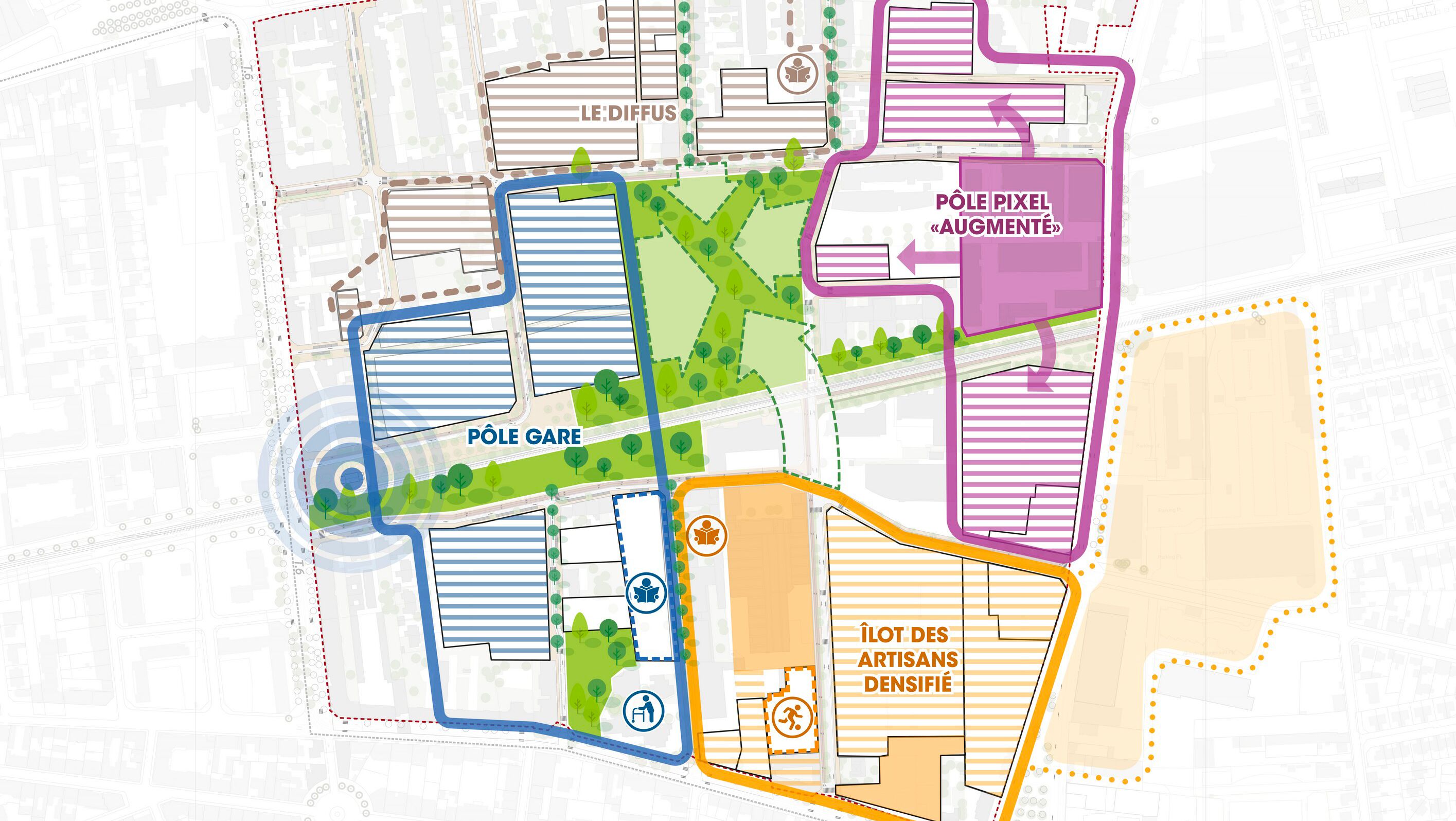 Le retour de la nature en ville constitue le fil conducteur du projet de recomposition urbaine du secteur Grandclément Gare, polarité héritée de l'ère industrielle qui se déploie sur 45 ha au sud-est de Villeurbanne